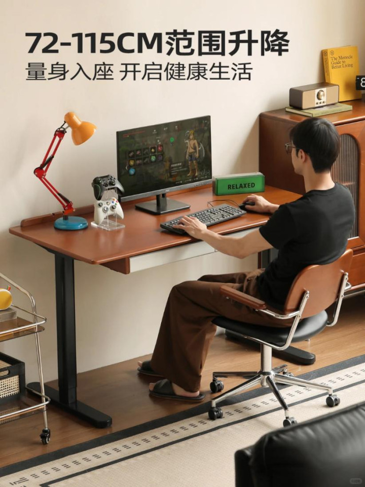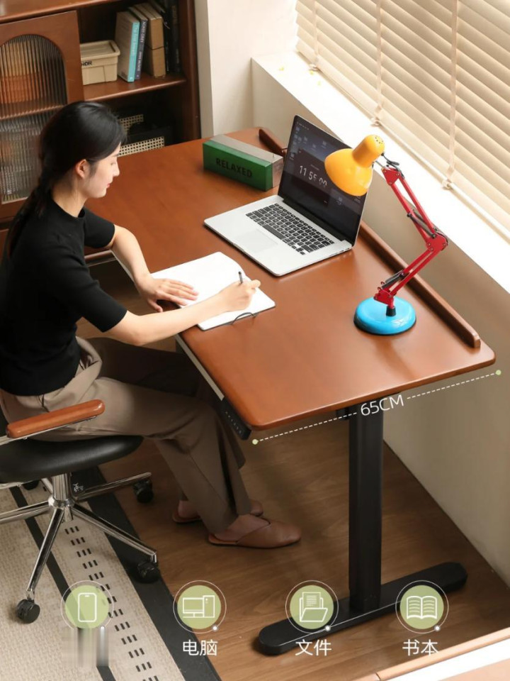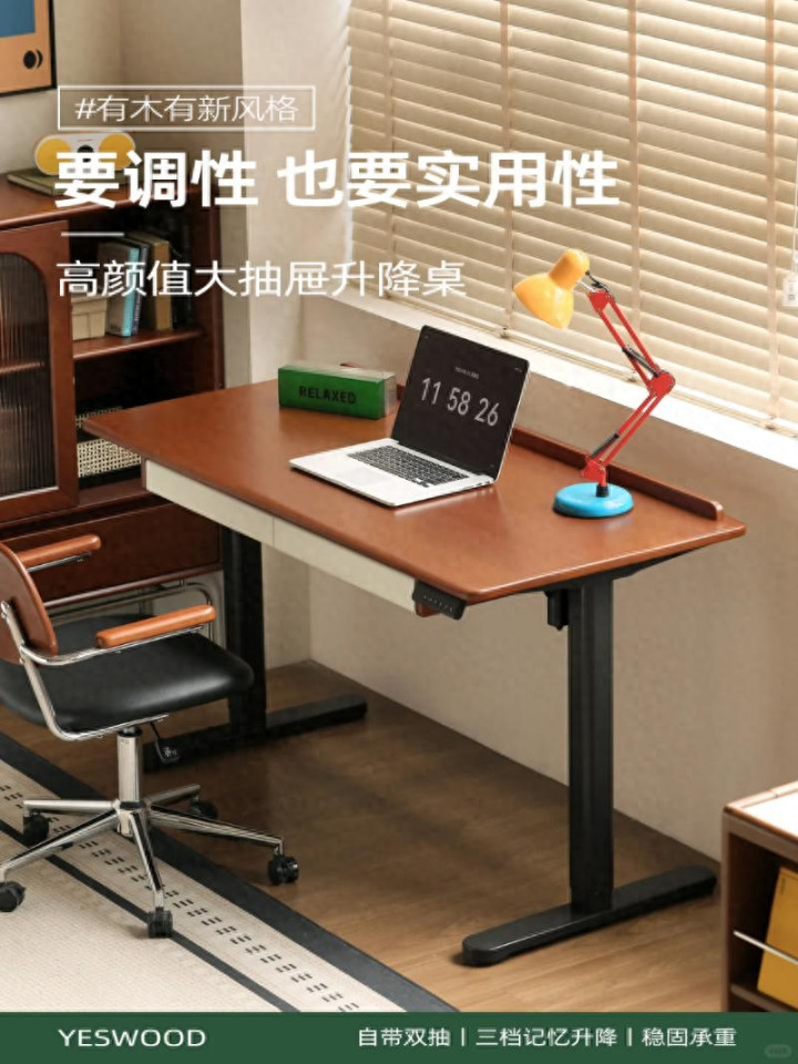 说实话,最初我对实木家具的想象还停留在"笨重、老气、像爷爷家的旧书桌"这样的刻板印象。直到在朋友家看到这张升降桌,才猛然发现原木美学已经进化到了next level。源氏木语的设计师显然深谙"颜值即正义"的时代法则,这款罗温升降桌把中古韵味和现代极简玩出了高级感。